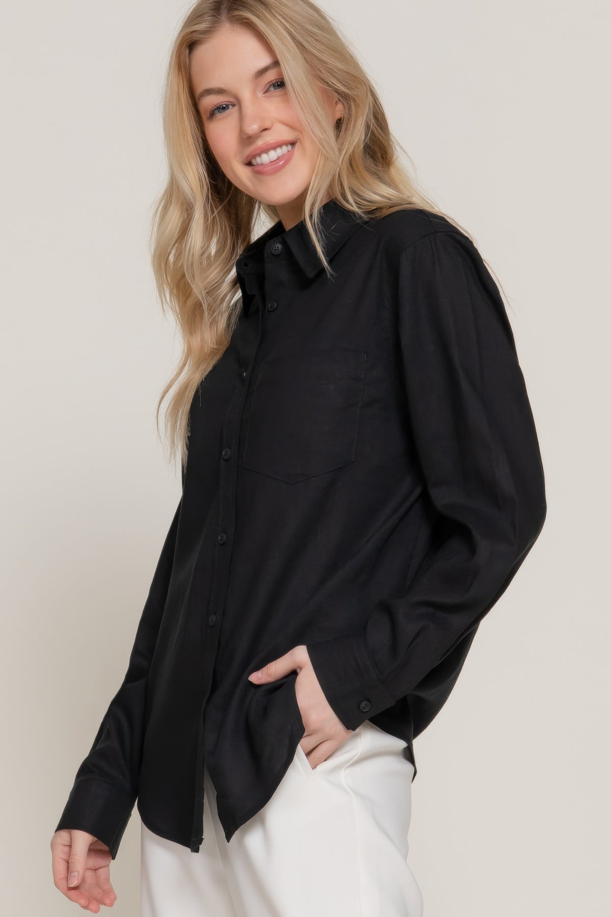 Add the Long Sleeve Linen Blend Shirt in black to your cart today and enjoy effortless style, comfort, and versatility!