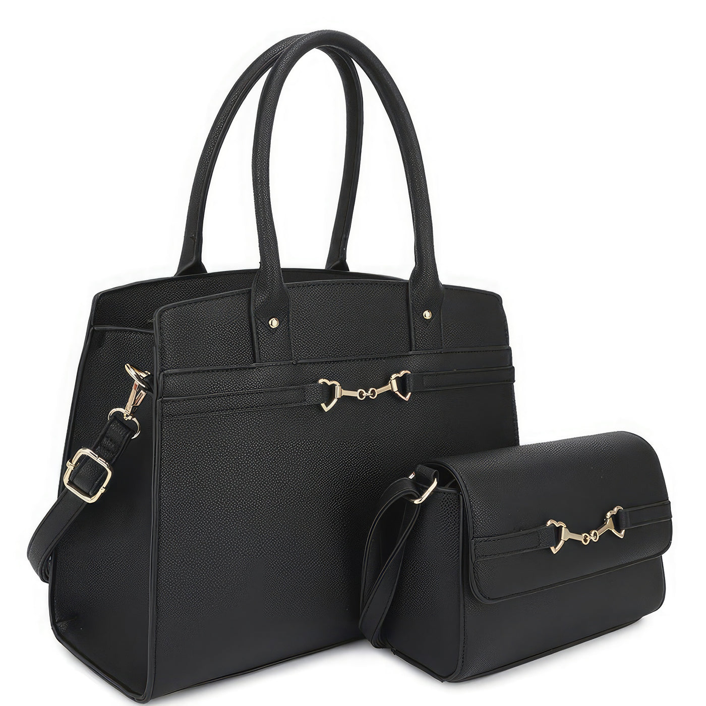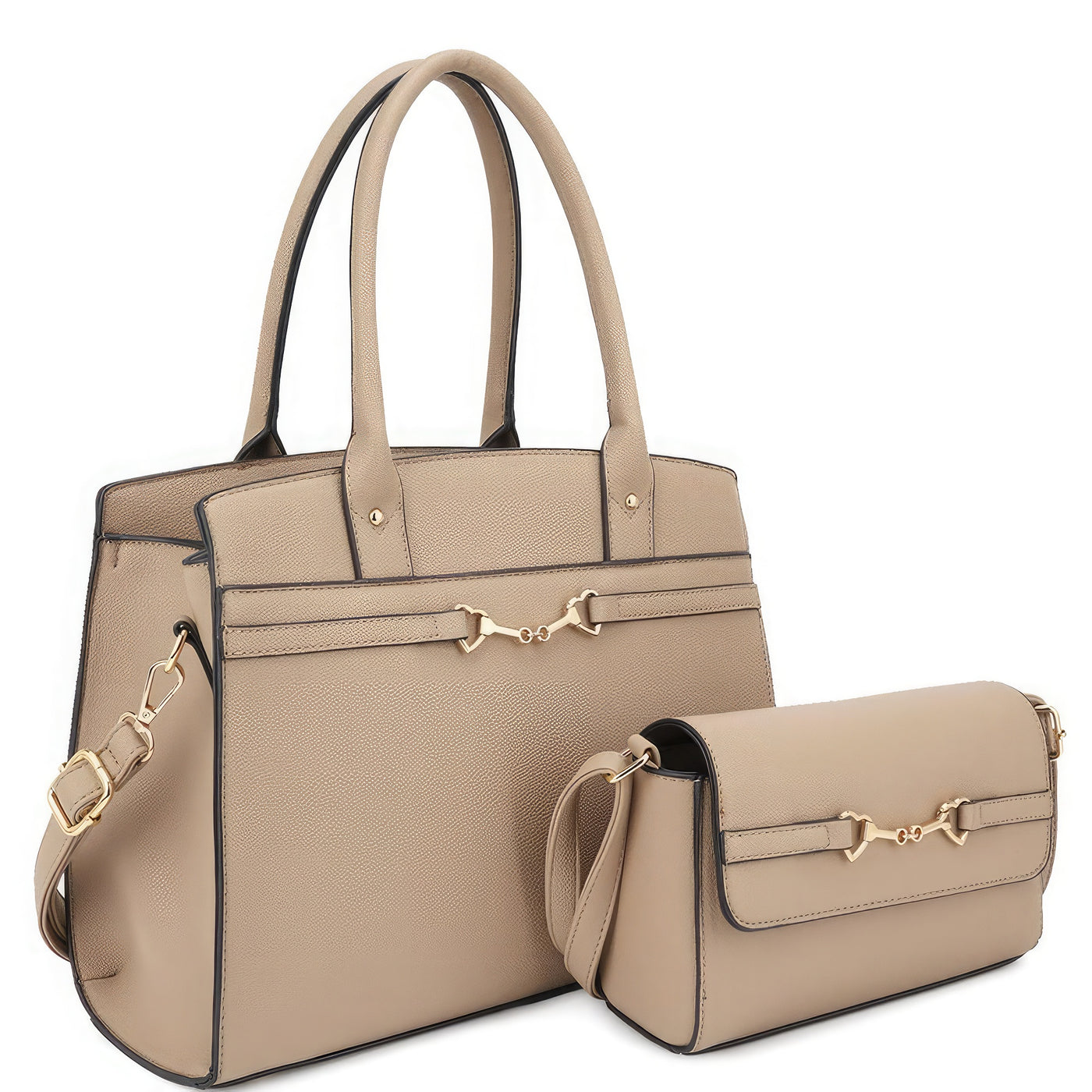 2in1 Matching Design Handle Satchel With Crossbody Bag