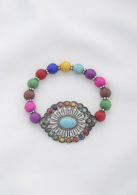 Add the Rodeo Western Concho Beaded Bracelet to your collection now and elevate your style with a touch of Western allure!