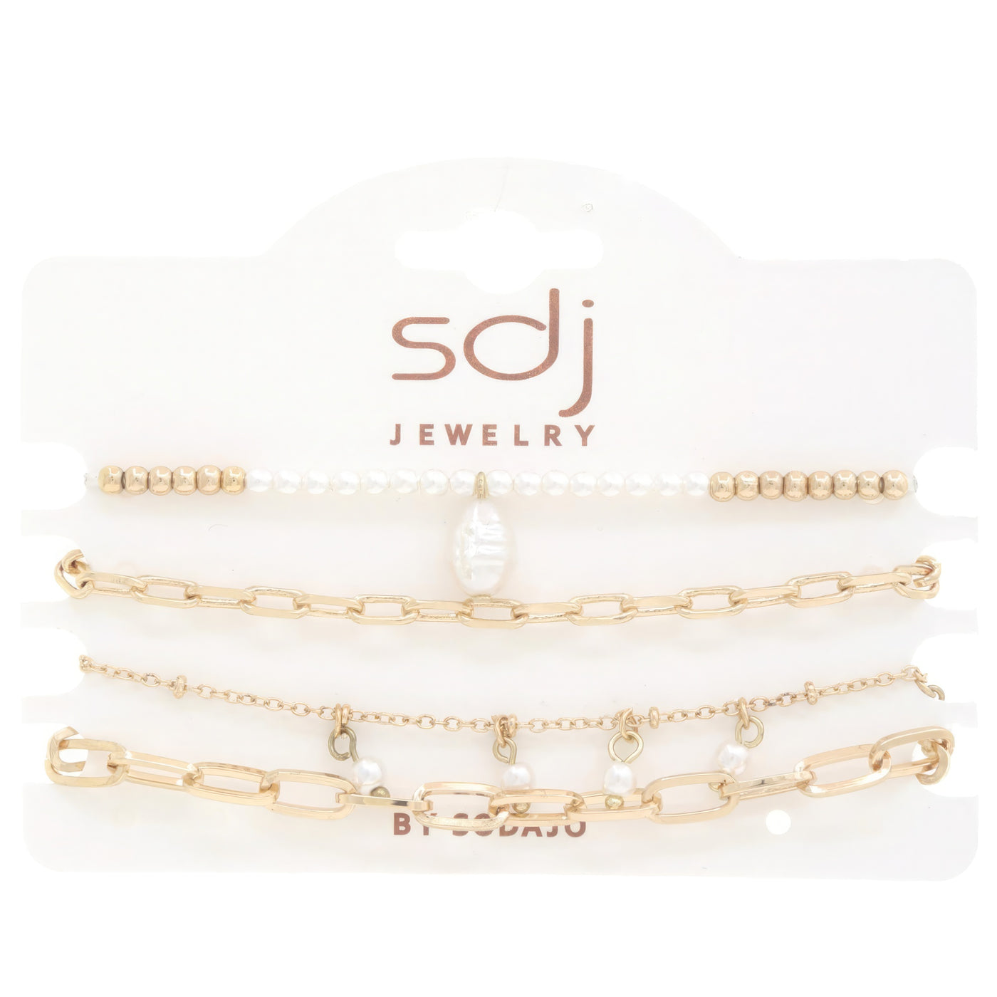 Why Choose Sodajo Pearl Bead Oval Link Bracelet Set in Gold?