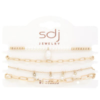 Elevate your wrist with the timeless elegance of the Sodajo Pearl Bead Oval Link Bracelet Set in Gold. Add this exquisite set to your jewelry collection and make a statement wherever you go!