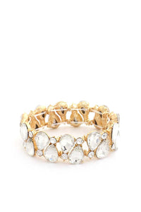 Experience the allure of teardrop rhinestones combined with the convenience of a stretch bracelet. This accessory effortlessly adds a touch of glamour to your ensemble.