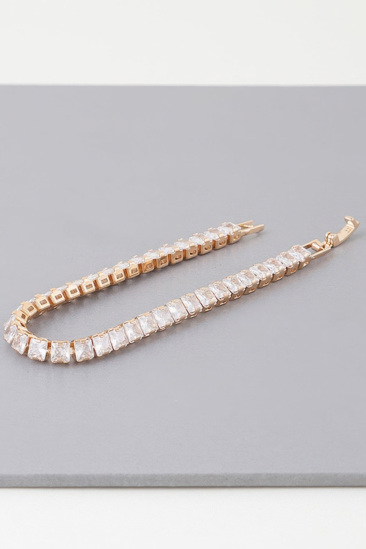 This bracelet stands out for its simple yet sophisticated design, offering just the right amount of sparkle. It's a perfect addition to your jewelry collection for adding a touch of refinement to any outfit.