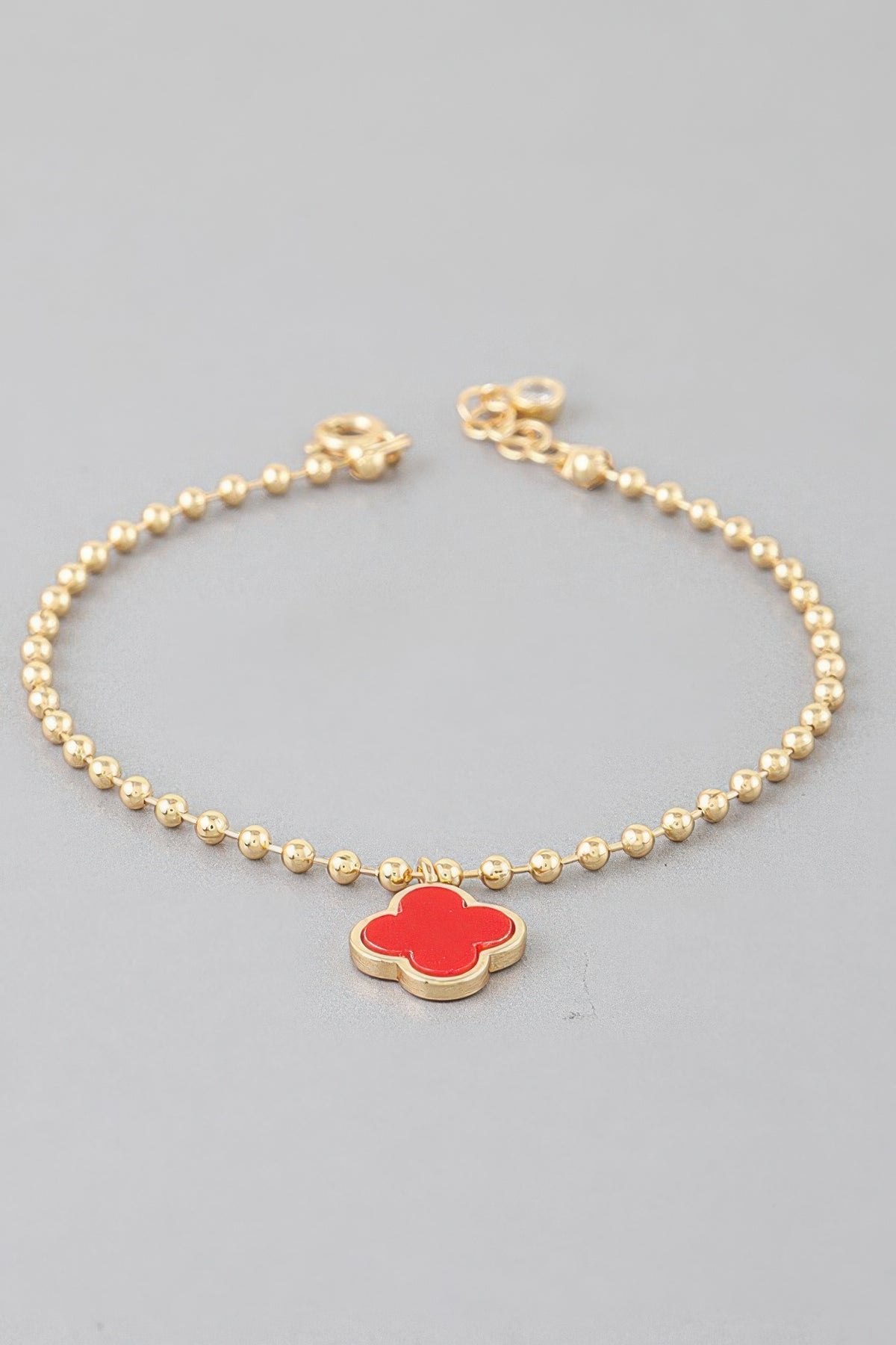 Design: Features a combination of vibrant beads and a stylish clover charm that adds a whimsical yet sophisticated touch to the bracelet.