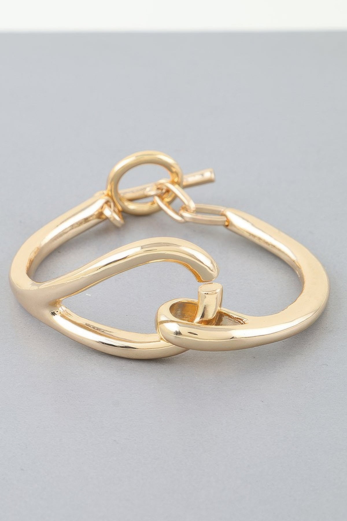 Add a bold and unique touch to your accessory collection with the Looped Together Bracelet. With its modern design and sleek gold finish, this bracelet is the perfect statement piece for any outfit.