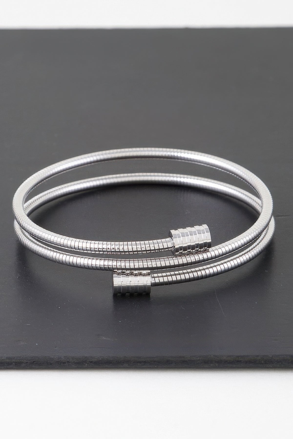 Add the Coil Wrapped Bracelet to your cart today and enjoy a stylish and modern piece that adds a unique touch to any look!