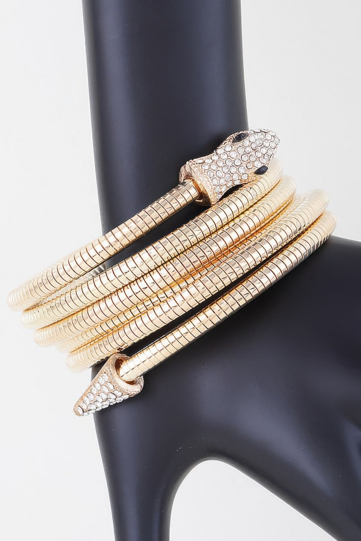 Coiled Bejeweled Snake Bracelet - Silver clear