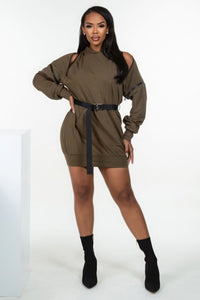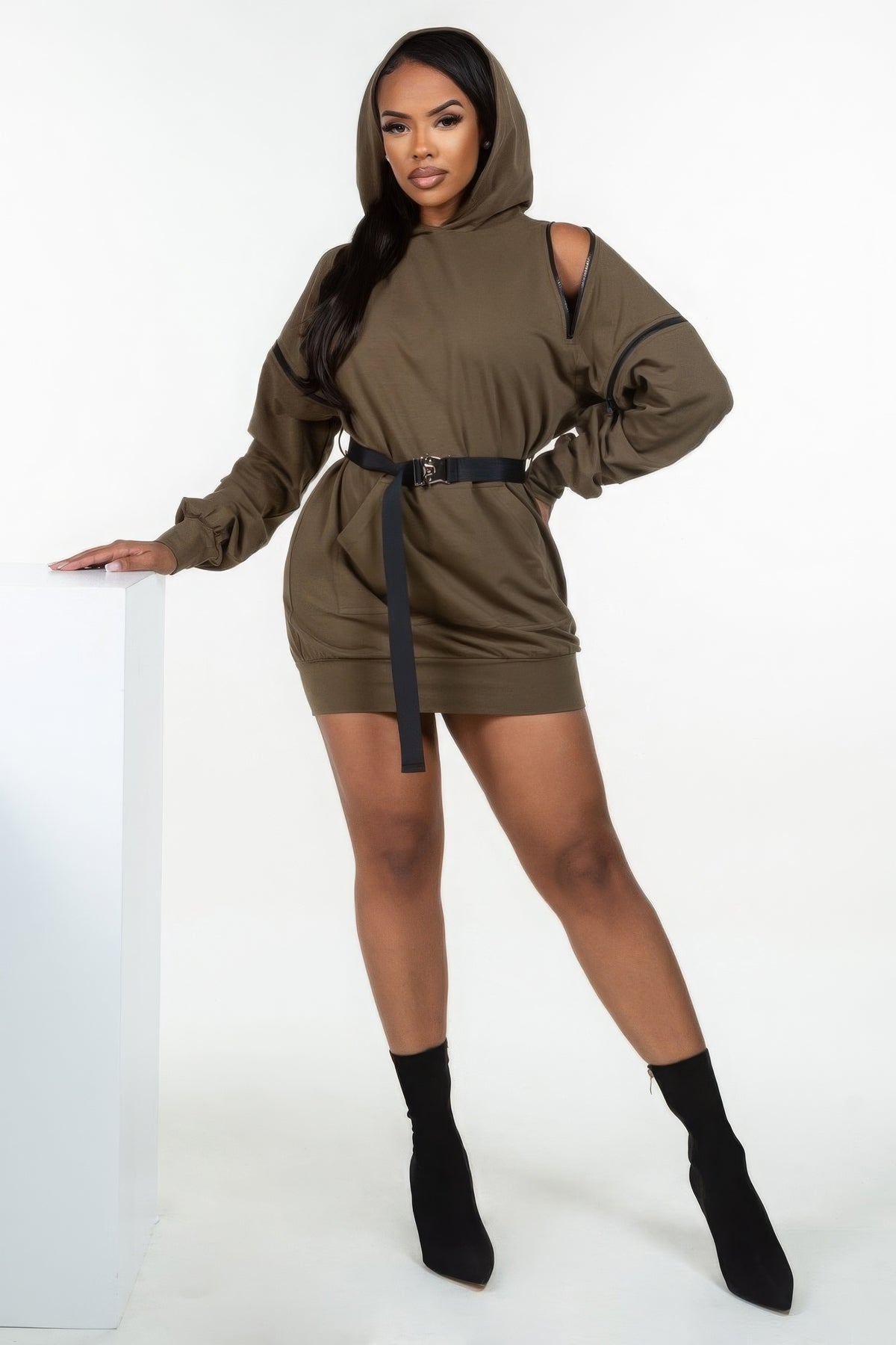 Double Zipper Long Sleeve Hooded Mini Dress - S