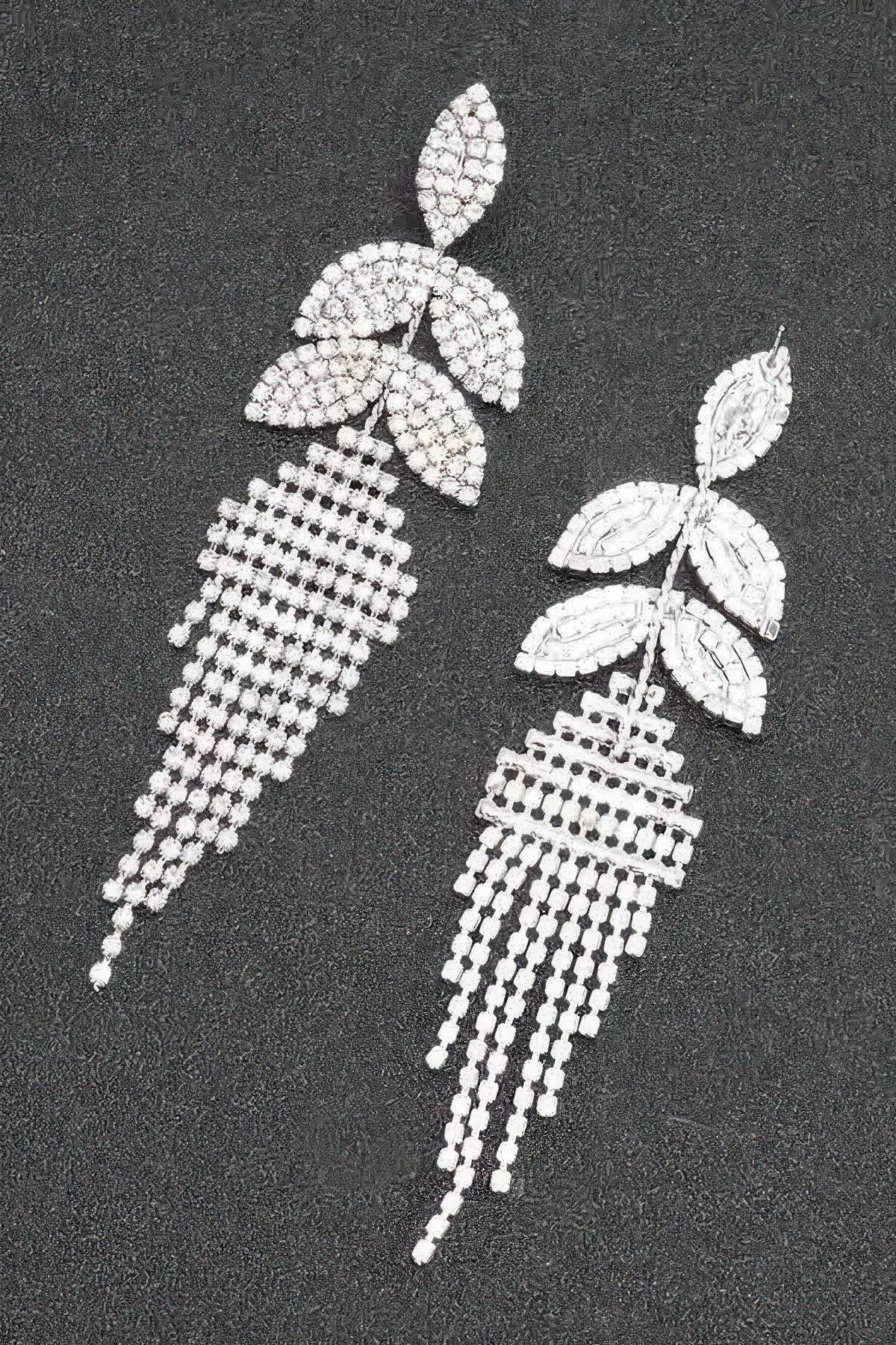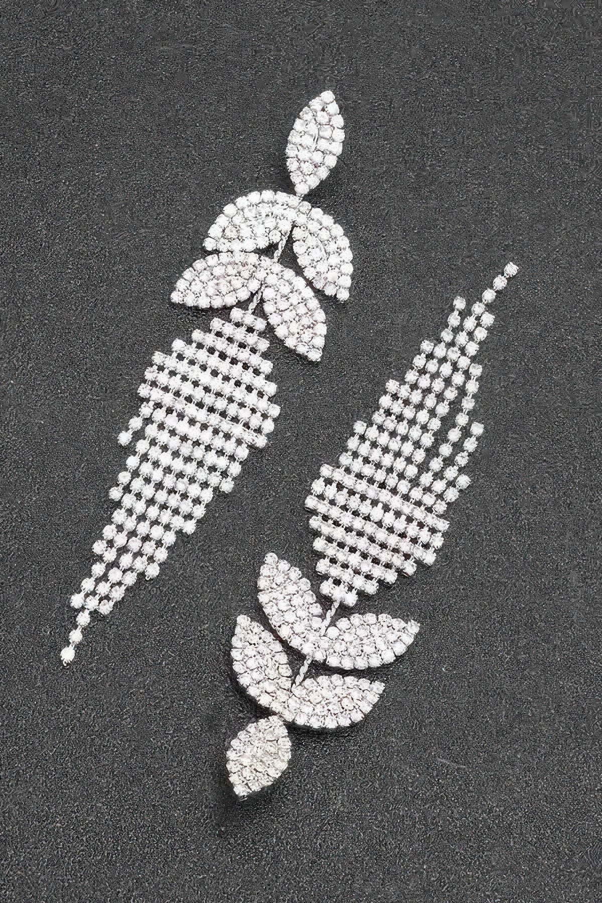 - Design: Features a cascading fringe of rhinestones, creating a fluid and dynamic design that adds movement and shine.