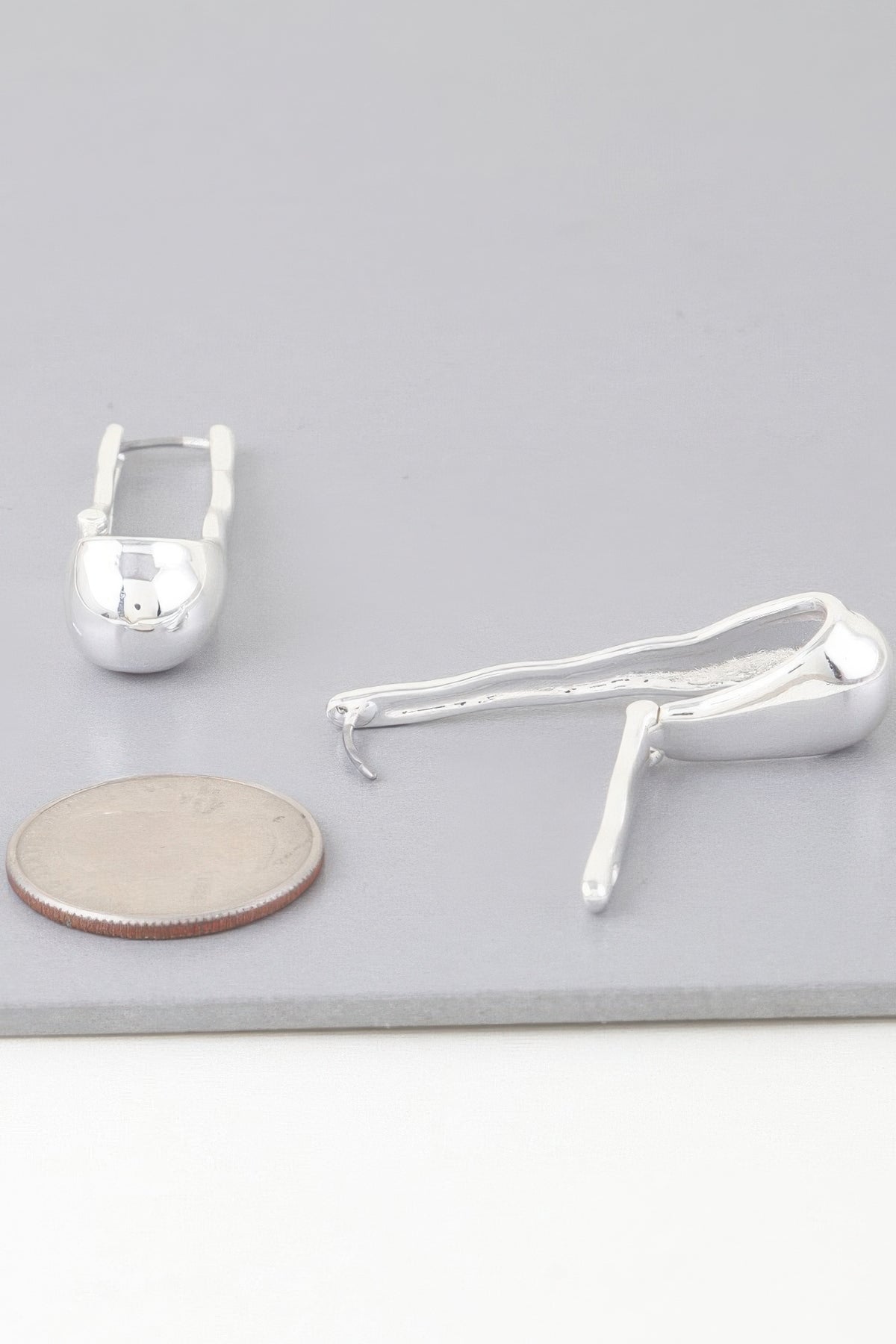 These earrings offer a unique, modern take on the traditional hoop design. Their shiny, smooth surface and melt-inspired shape add an element of contemporary elegance that's perfect for any occasion.