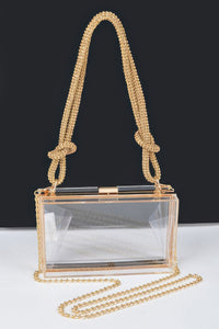 Make a bold statement with our Clear Case Clutch with Rhinestone Handle, a chic and sophisticated accessory designed to elevate your evening look. Featuring a transparent acrylic body and a sparkling rhinestone handle, this clutch is the perfect balance of modern elegance and eye-catching glamour.