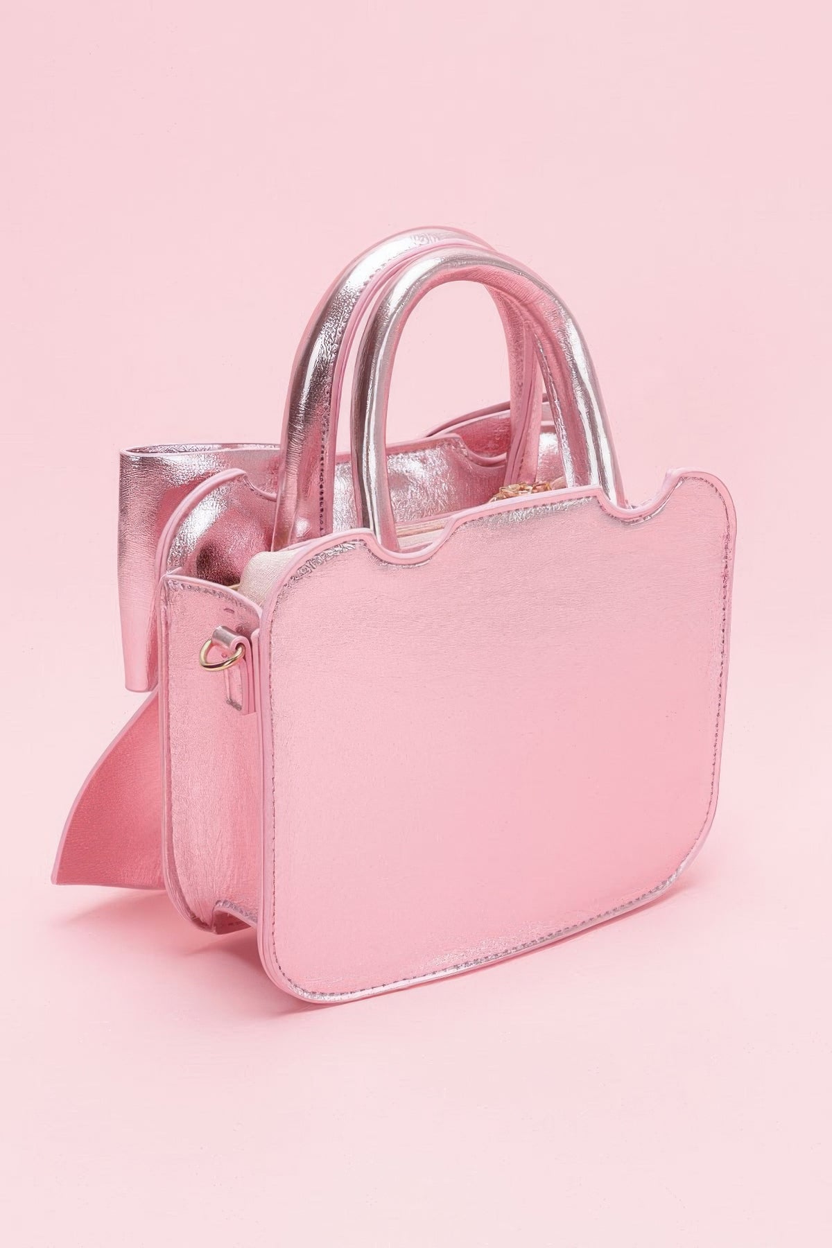 Add a touch of playful elegance to your collection with our Metallic Bow Front Top Handle Clutch, a charming and stylish accessory that will elevate any outfit. Crafted with high-quality materials, this clutch features a delicate metallic bow front design that brings a sense of sophistication with a fun twist.