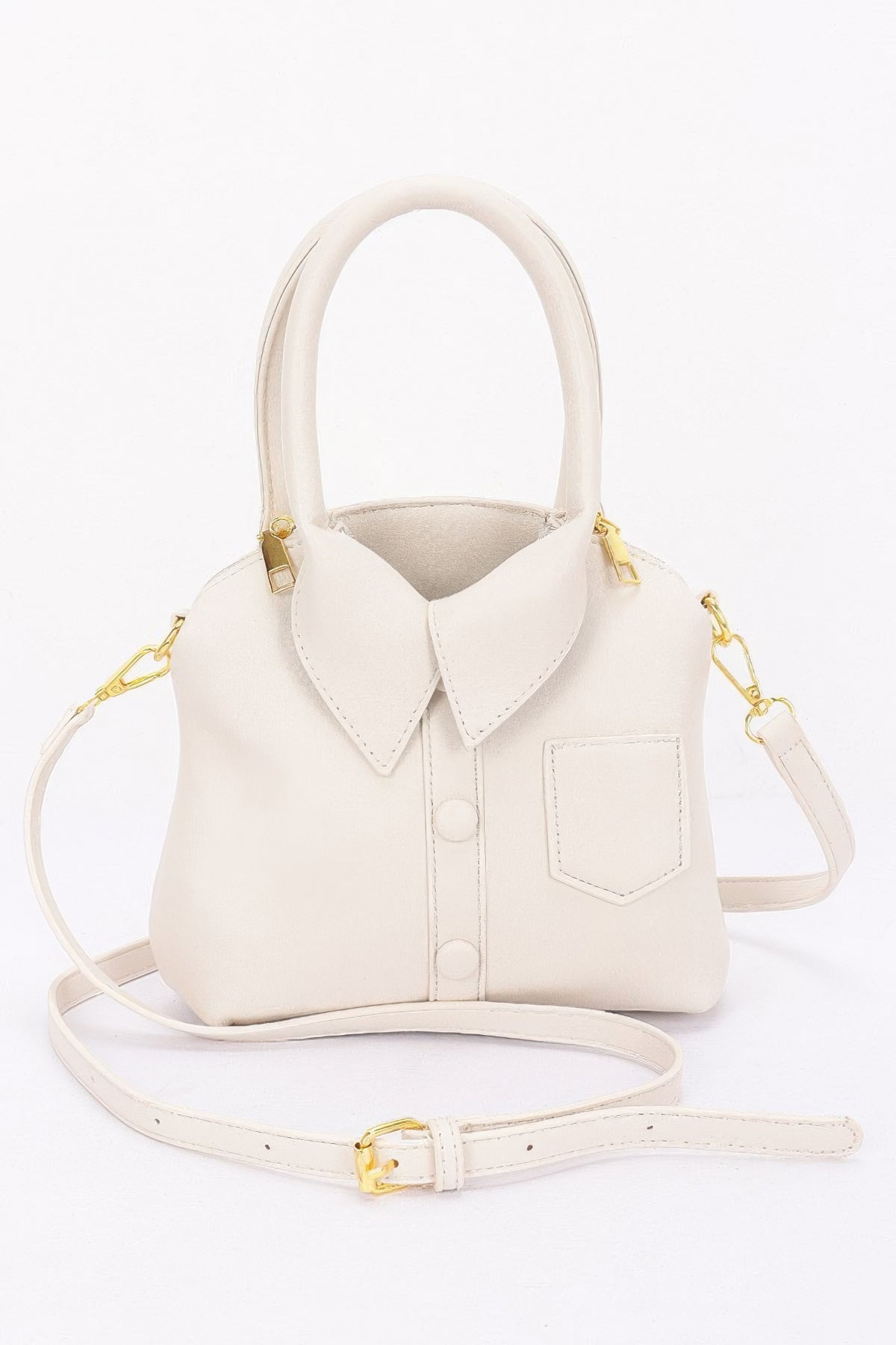 Add a touch of elegance and sophistication to your accessory collection with the Faux Leather Shirt Style Top Handle Bag. Order now and experience luxury with every carry!