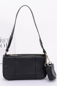 Quilted Faux Leather Shoulder Bag W/ Airpod Bag