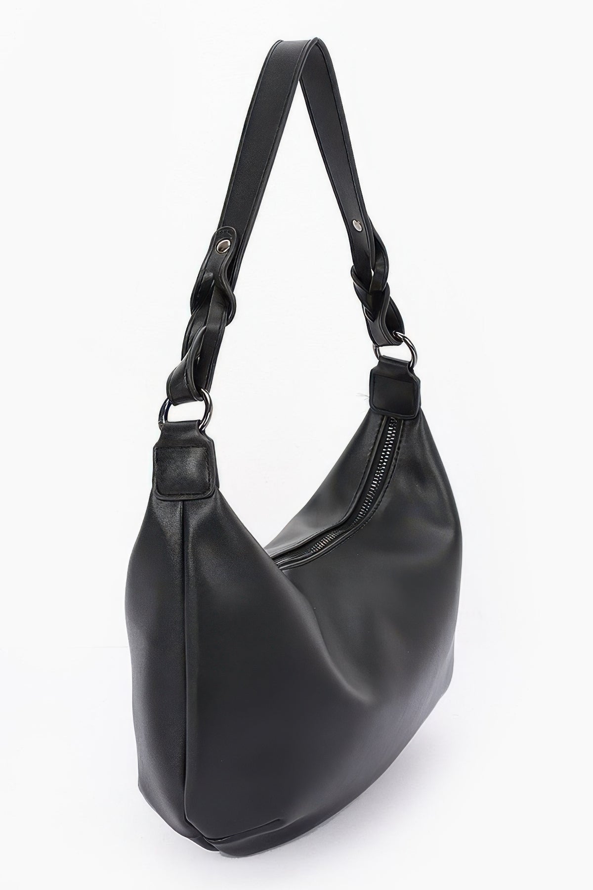 Faux Strap Shoulder Bag - Black