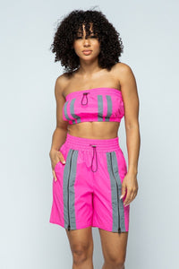 Add the Cropped Mini Tube Top and Lined Thigh Length Shorts Set in Pink to your cart now and embrace the summer vibes with confidence!