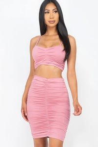 Ruched Crop Top And Skirt Sets