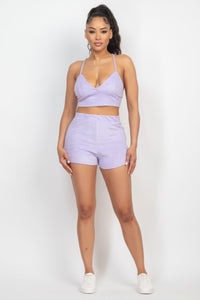 Experience the perfect blend of fashion and comfort with our Terry Towel Bralette Top & Mini Shorts Set in Lavender. Add it to your cart now and embrace the laid-back chic vibe!